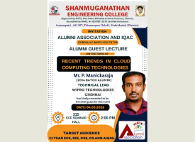 The Alumni Association with the Internal Quality Assurance Cell (IQAC) of Shanmuganathan Engineering College (SEC), organized a Alumni guest lecture on March 4th, 2026. The event was part of the college’s ongoing initiative to provide students with exposure to global technological trends and expert academic insights. Third year students from ECE, ECE, CSE, CS and AI &ML students and alumni coordinator were present during the function.