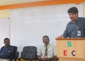 Dr. Varadharajan, Head of the Department of Electrical and Electronics Engineering, welcomed everyone to the ISRO awareness event organized by Shanmuganathan Engineering College. Scientists Mr.Kamal and Mr.Balasundaram from the Indian Space Research Organisation (ISRO), Mahendragiri, participated and spoke at the event.