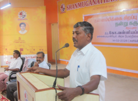 The guest of honor for the day was Mr. G. Valliyappan, Headmaster of Govt Higher Secondary School, Sadayampatti and a renowned orator (Pattimandram speaker). Delivering his speech under the title " Nandru Karuthu.." (Think Noble), he inspired the students with the following insights: