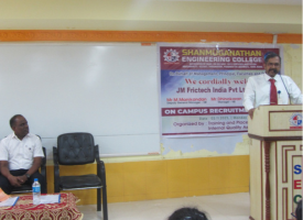 The Training and Placement Cell of our Shanmuganathan Engineering College, organized an On-Campus Recruitment Drive in collaboration with JM Frictech India Pvt. Ltd. on 3rd November 2025. The drive aimed to provide final-year students with an opportunity to start their professional careers with a reputed company in the automotive sector.