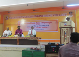 A self-confidence lecture for first-year students was held at Shanmuganathan Engineering College, Arasambatti, Tirumayam, on Friday, September 26.